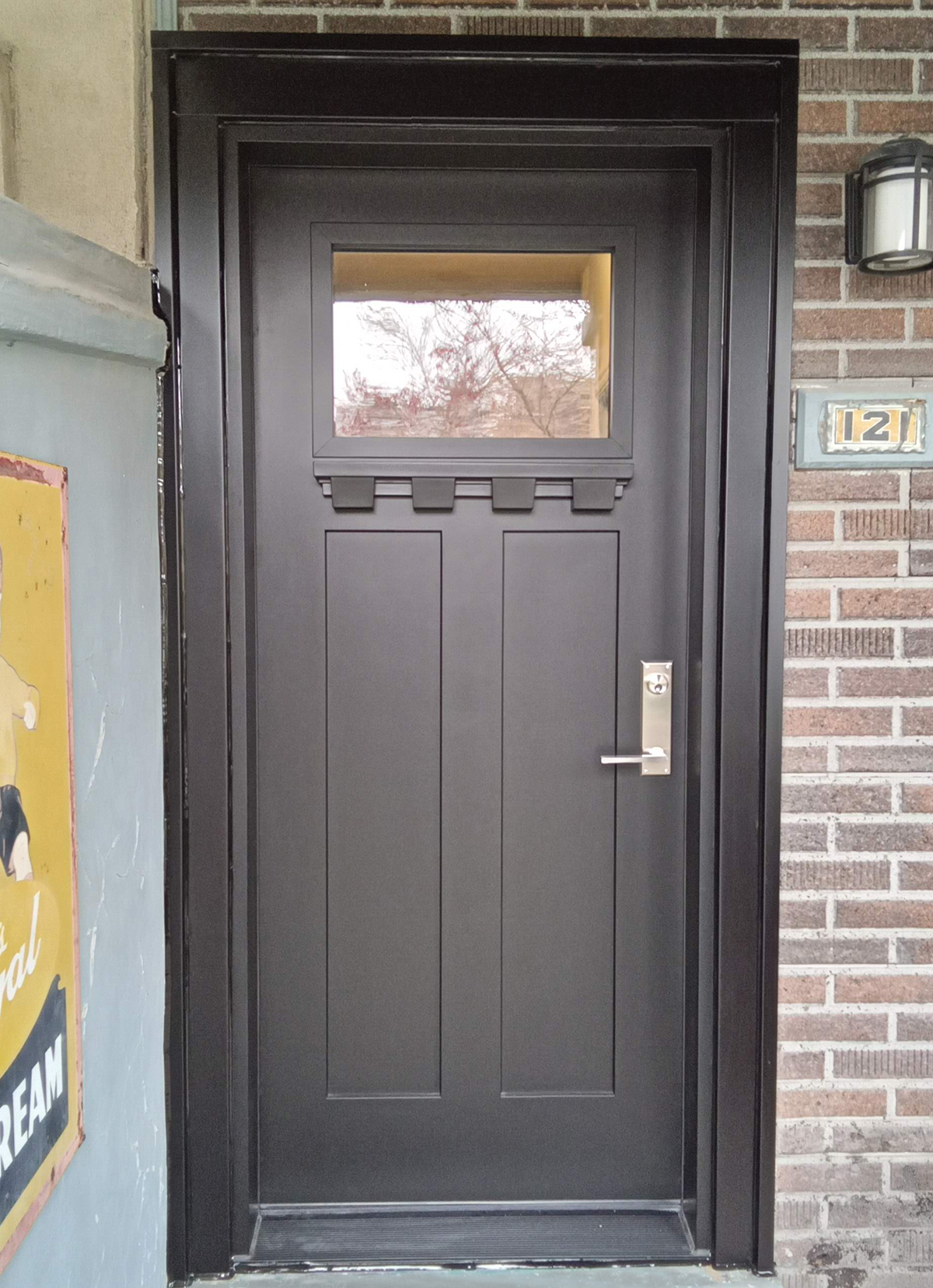 Smooth fiberglass Craftsman-style front door installed in Toronto