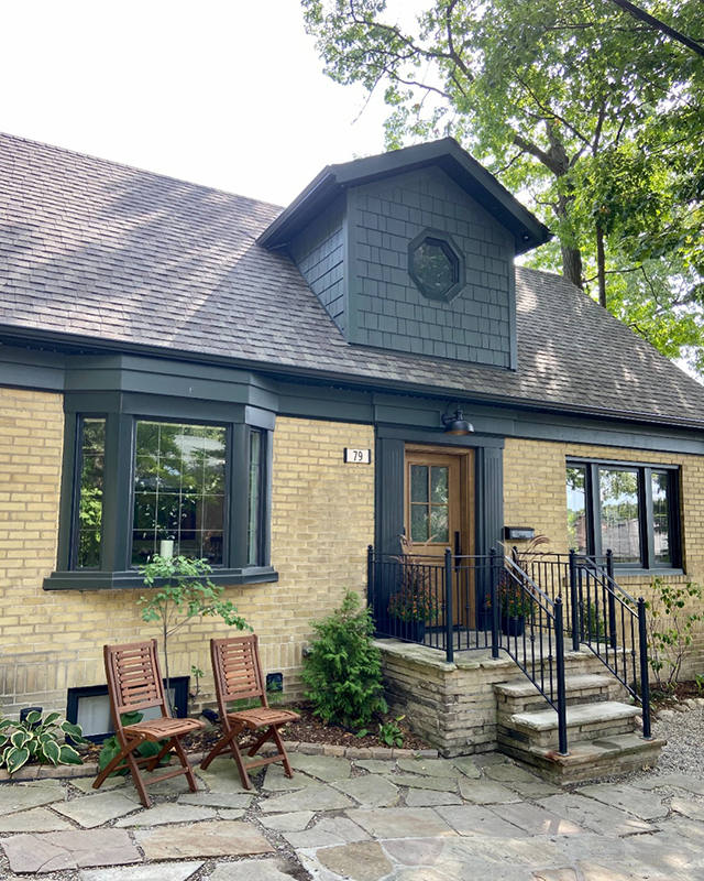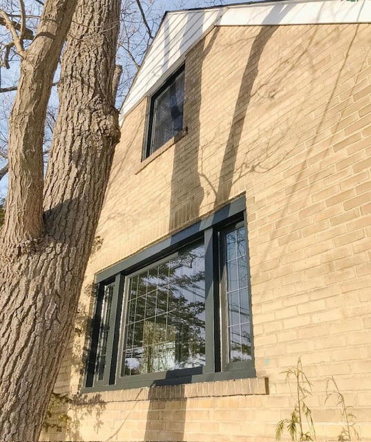 Our Toronto customer updated their windows to vinyl windows with pewter internal grilles. The bay window is direct set and the family room window is a casement window.